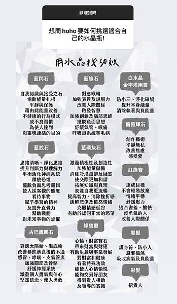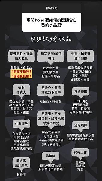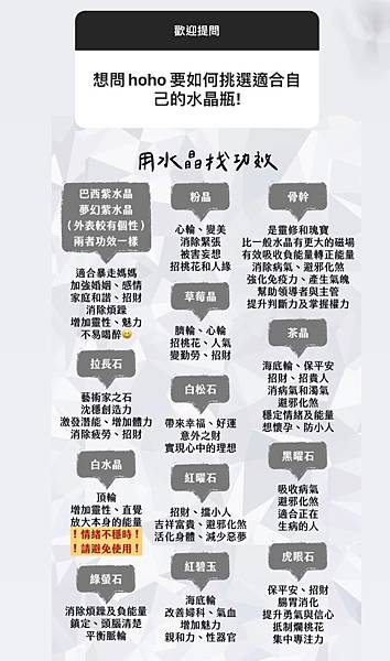 (我不注重功效只是單純喜歡水晶外觀,所以只是附上賣家限動參考喔)